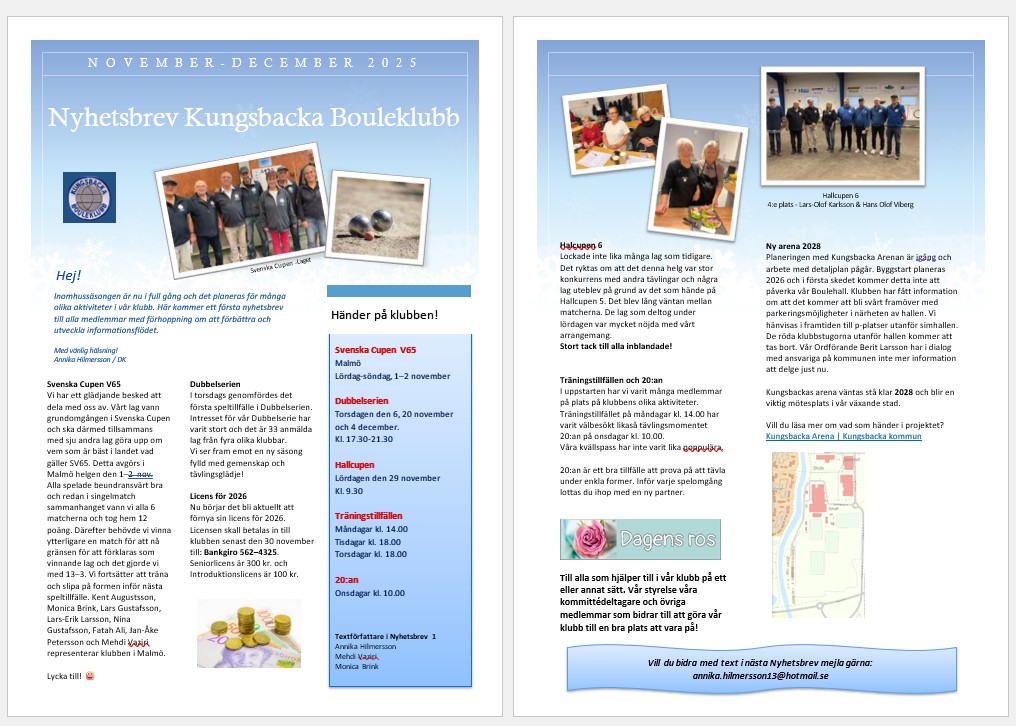 Efter förra säsongens spel och positiva kommentarer kommer klubben även kommande inomhussäsong att genomföra en Dubbelserie. Som framgår av namnet så är det en tävling för dubbelpar. Beroende på hur många lag som anmäler sig så bestäms det om det blir en enkelserie eller om vi möts två gånger. Därefter blir det slutspel där de 16 bäst placerade...
